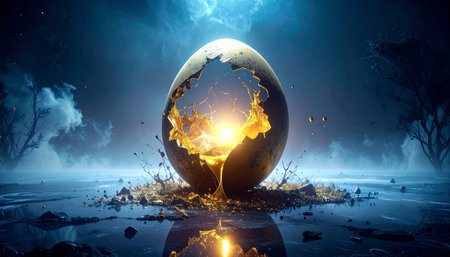 The Enchantment of Easter: A Shattered Egg's Burst of Light Captured in Illustration