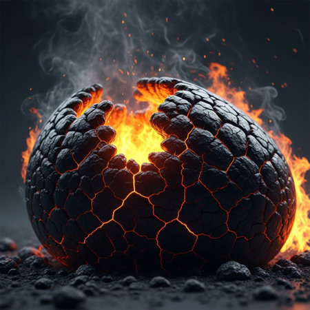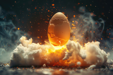 Dramatic Exploding Egg with Smoke and Sparks in Dark Background