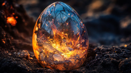 Unwrap a fiery delight! This handmade chocolate egg, glowing from within, is an artisan masterpiece Rich dark chocolate and intricate detailing make it a captivating centerpiece, perfect for Easter, birthdays, or any special occasion demanding a gourmet, sweet indulgence It's an extraordinary gift that sparks joy and wonder AI Generative