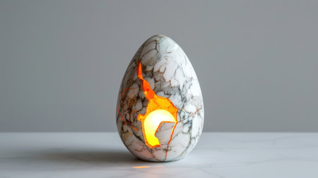 A captivating image of a cracked egg revealing a warm glow from within, set against a smooth marble surface. This artwork symbolizes new beginnings and creativity.