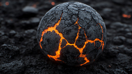 Stunning image of glowing lava rocks resting on a dark surface, featuring intricate crack patterns and illuminated magma, highlighting the beauty of nature's forces.