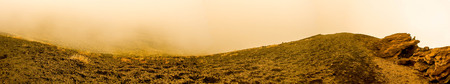 Selfie photo tourist in crater of volcano Etna Sicily Italy