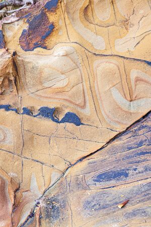 Colorful weathring detail of sandstone erosion. Was seen in New Zealand.
