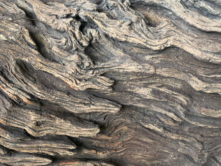 Close up view of solidified lava flowing showing texture and patterns