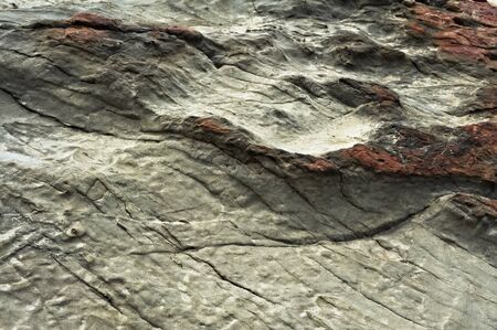 Red iron and pattern seen in the rocky shore rock face