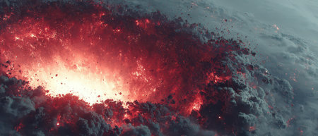 A supervolcano erupts with explosive force, spewing ash, rock, and lava into the atmosphere. Generative AI
