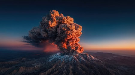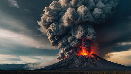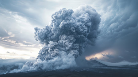 Volcanic explosion that creates a huge cloud of ash and smoke. generative ai