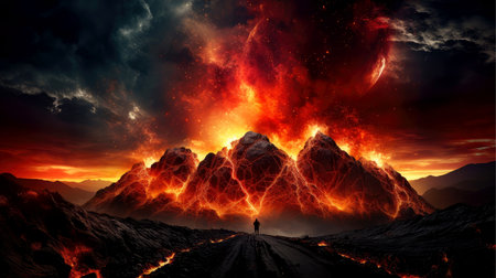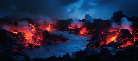 Lava flows ignite night sky in fierce apocalyptic volcanic landscape