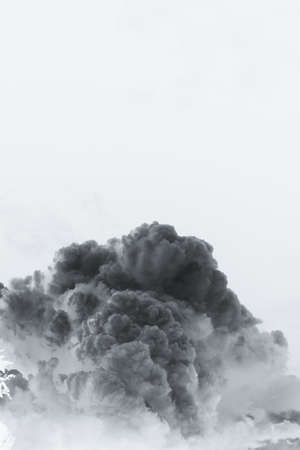 Thick black fog smoke on white background.