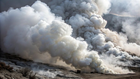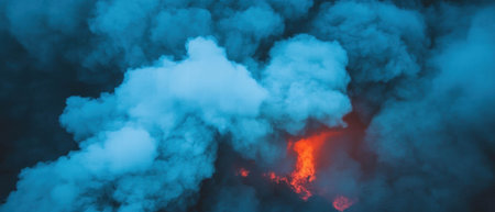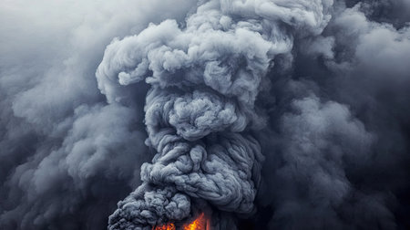 close-up of volcanic ash and smoke in the sky, created with generative ai