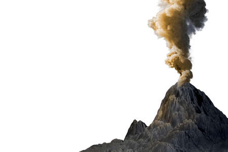 volcano blast eruption with huge smoke column and flames isolated on white, suffer from eruption and volcanic ash concept - 3D illustration of nature