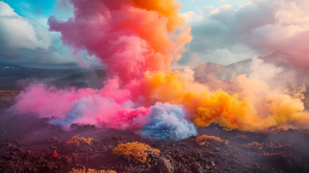 Clouds of colored smoke. An abstract background that creates an enchanting and mysterious atmosphere, drawing you into a cloudy world of colored dreams. AI generated.