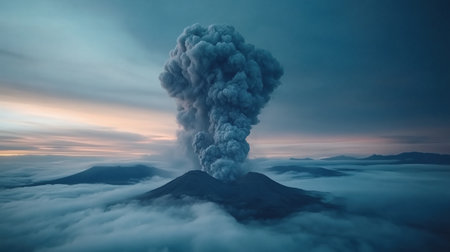 Volcanic explosion that creates a huge cloud of ash and smoke. generative ai