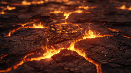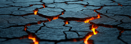 Cracked earth with glowing lava fissures, abstract background.