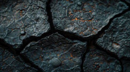 Cracked volcanic rock showcases rough black gray texture and intricate patterns