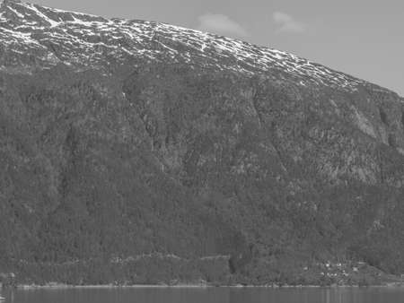 Tourism vacation and travel. Mountains landscape and fjord in Jostedalsbreen National Park, Oppstryn (Stryn), Sogn og Fjordane county. Norway Scandinavia.