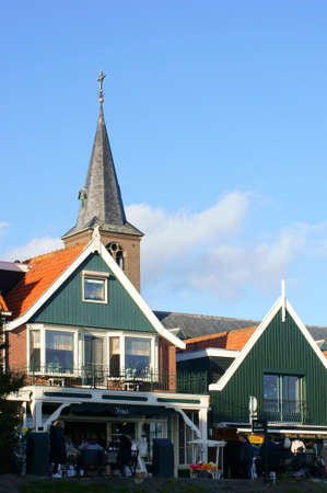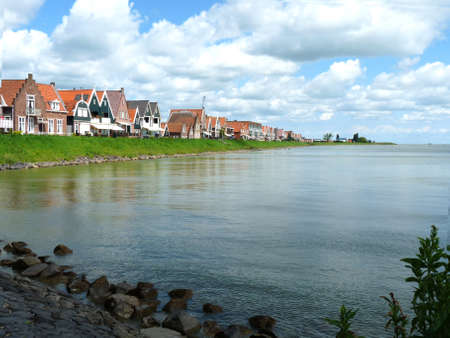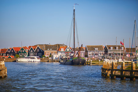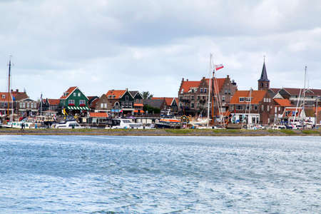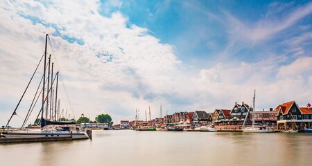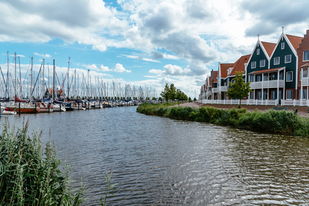 Volendam view at the harbour, traditional Dutch fishing village located at Markermeer lake.