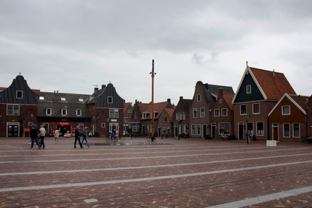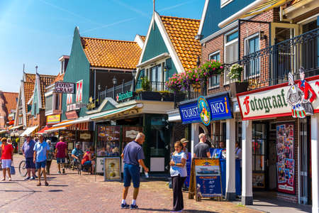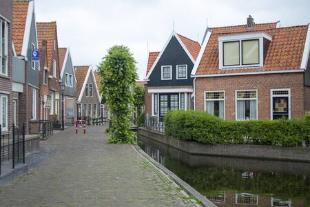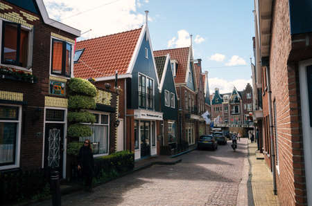 VOLENDAM, NETHERLANDS - JUNE 18, 2014: Traditional houses & streets in Holland town Volendam, Netherlands. Volendam - a small town that has preserved the tradition of Dutch fishing villages.