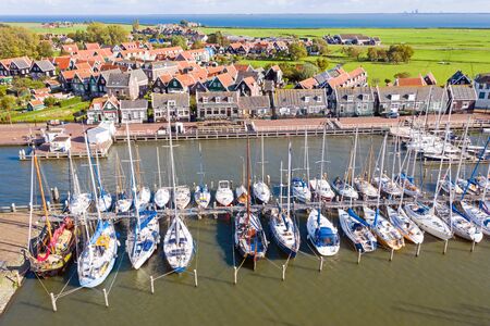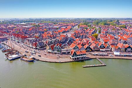 Aerial from the harbor and traditional village Volendam in the Netherlands
