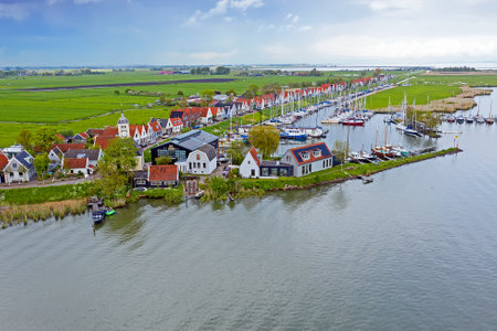Aerial drone view of picturesque village of Marken, near Volendam, North Holland, the Netherlands