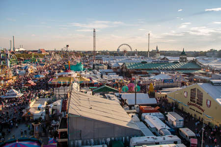 Munich, Germany - September 28: Aerial view of the crowd in the festival - Octoberfest