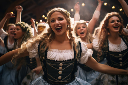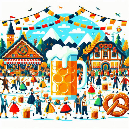 Immerse yourself in the lively atmosphere of a vibrant Oktoberfest celebration, as people joyfully dance and sing along to the energetic music in the bustling beer hall. Feel the excitement and embrace the spirit of this lively event