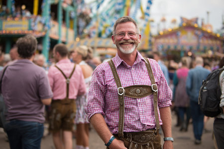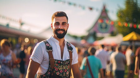 A man in traditional german clothing drinking beer at a festival, AI