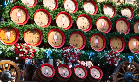 MUNICH - SEPTEMBER 21 A side view of a coach with beer barrels at the opening parade of world biggest beer festival Oktoberfest in Munich September 21, 2013 in Munich, Germany