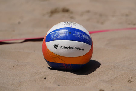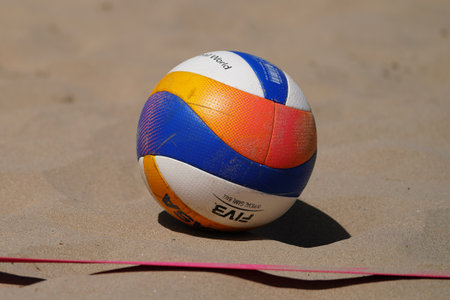 ISTANBUL, TURKIYE - JUNE 23, 2024: Mikasa VLS300 ball in Pro Beach Tour Sile Leg in Istanbul