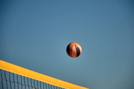 Close-up photo of volleyball game with soft cinematic effect and detailed main subject.
