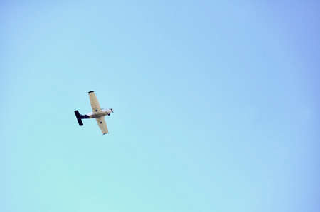 Small recreational plane, ideal for flight practice flying over a blue sky on a clear day