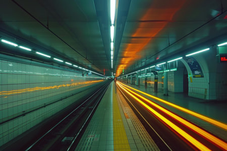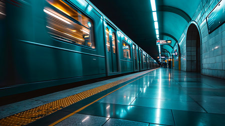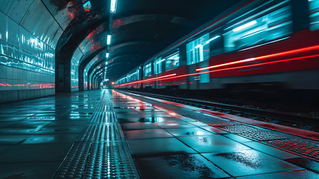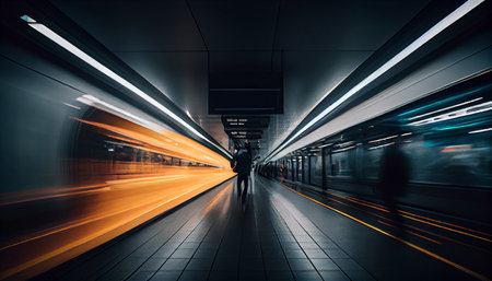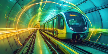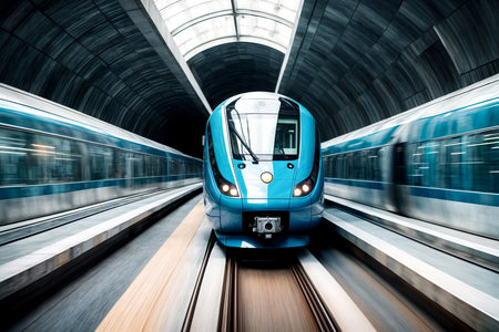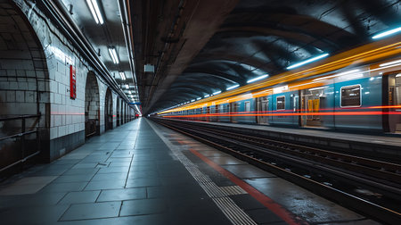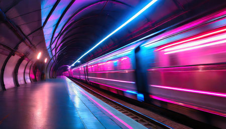 Dynamic urban metro energy speeding subway train in tunnel with motion blur captures vibrant motion