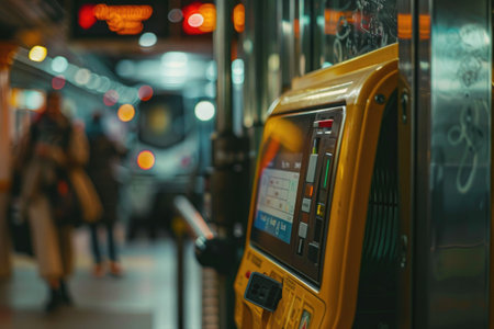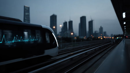 Modern Transport Hub Showcases Advanced Train Technology With Efficient Design and Robust Security at Urban Station During Night Hours Generative AI