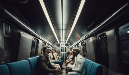 people in the subway wearing VR glasses, augmented reality in everyday life