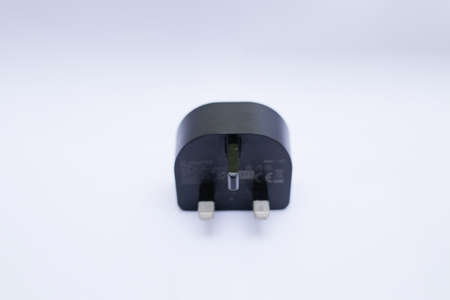 Power plug and Power outlet, isolated on power cord cable unplugged with White background, closeup