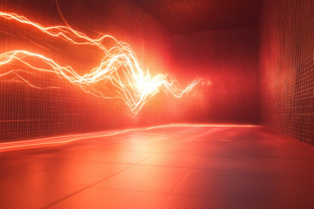 A striking display of electrical energy emanates from a device in a high-tech laboratory environment.