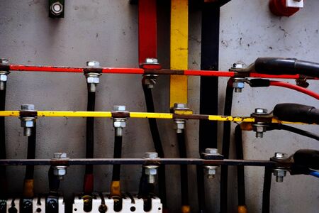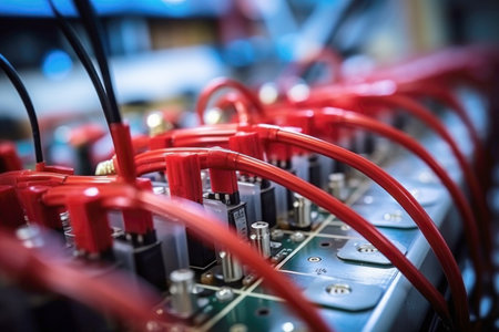 Vibrant view of electric components set against a bold abstract background showcasing the intricacies of power distribution in modern industry.