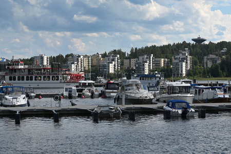 Jyvaskyla, Finland - July 26, 2024: People on quay in the city of Jyvaskyla in Finland.