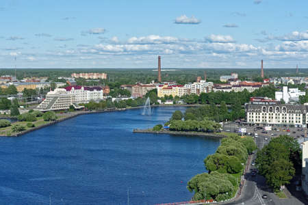 Beautiful top view of the Tampere city at summer day, Finland.