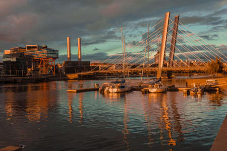 The embankment in the Kalasatama Neighborhood of Helsinki, Finland. Kalasatama neighborhood is an amazing example of the gentrification of the old port area.