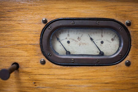 Vintage old analog volt meter scale of measurement device