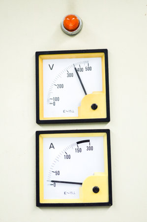 Set of voltmeter and ammeter. Voltmeter is a physical device for measuring the voltage in an electrical circuit. Appliances for measuring electric current in amperes and electric potential in volts