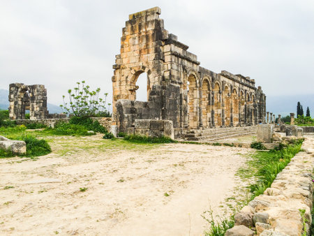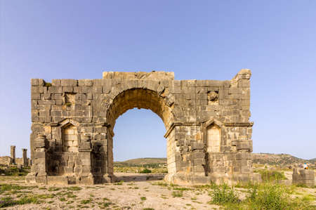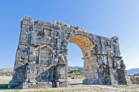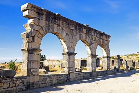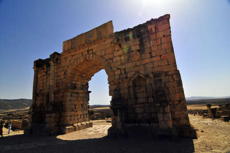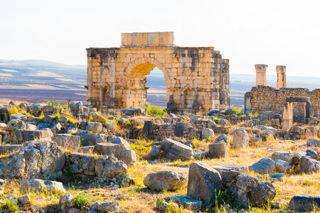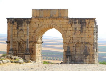 Old ruins of Roman City entrance, Volubilis in Morocco. it is declared a UNESCO World Heritage site.