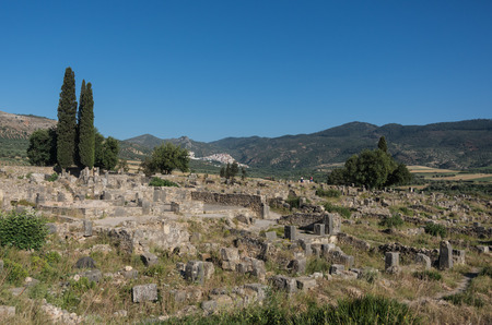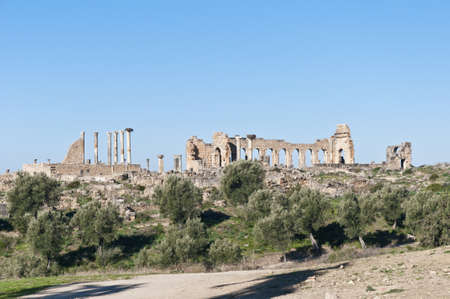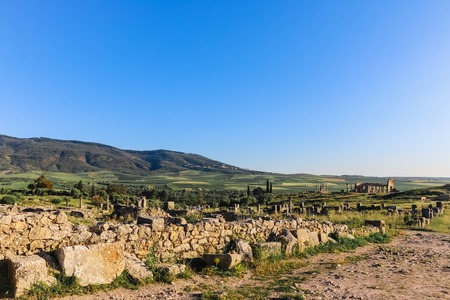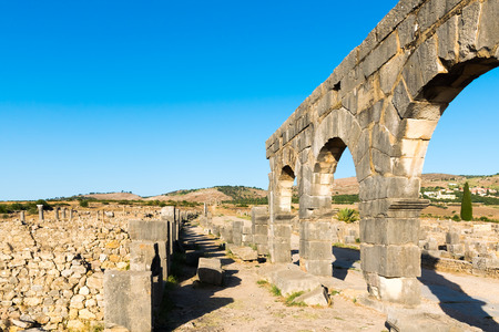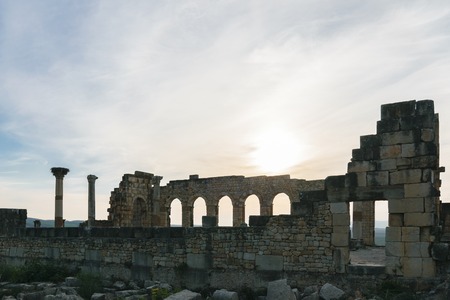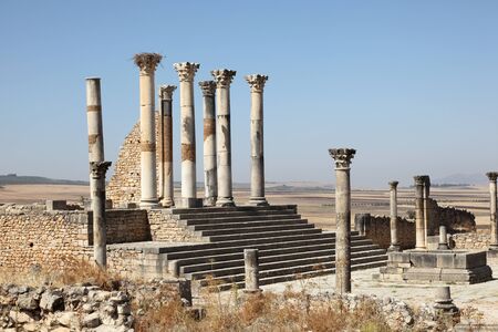 Ruins of Volubilis, an excavated Berber and Roman city in Morocco, ancient capital of the kingdom of Mauretania.