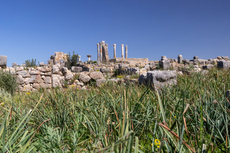 Ancient ruins of colonnaded portico in the Sanctuary of Apollo Hylates near Limassol, Cyprus.