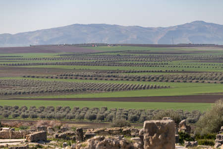 Olive plantation seen from the ancient city of Volubilis near Meknes in Morocco