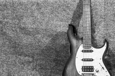 Black electric guitar on wall background