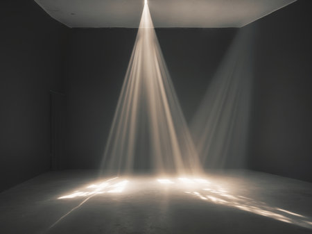 Light beams streaming through dark room, dramatic space. Artistic lighting concept