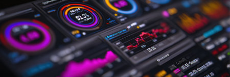 A modern workspace featuring multiple monitors showing analytical data and graphs, ideal for professionals in finance, technology, and research sectors focused on data analysis.