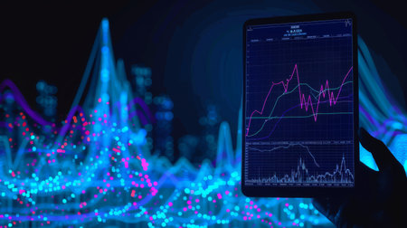 A close-up of a digital dashboard with rising investments, offering space for adding content about investment performance, growth, or risk management